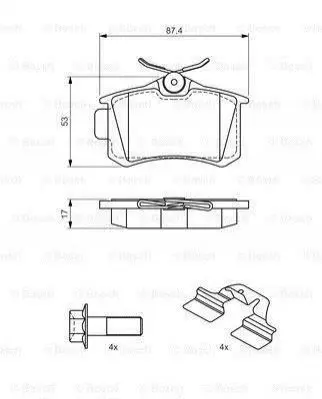 Тормозные колодки задние VW Caddy III 04-/Peugeot 308 07-/Citroen C4 04- (Lucas) (87.2x53.2x16.3) BOSCH 0 986 494 596