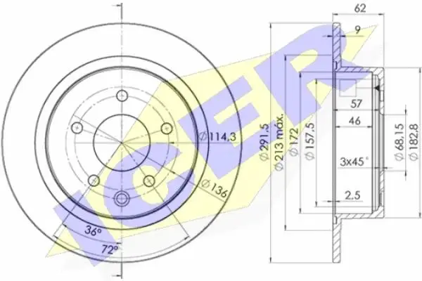Диск гальмівний (задній) Nissan Juke 10-19/Qashqai 06-13/Teana 03-13 (291.8x9) (повний) ICER 78BD2931-2
