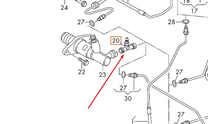 Вітаю! Клапан робочого циліндра зчеплення встановлюється безпосередньо перед самим циліндром.