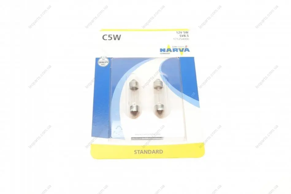 Автолампа C5W 12V 5W SV8.5 (T10,5x38) (Blister/2 шт) NARVA 171254000