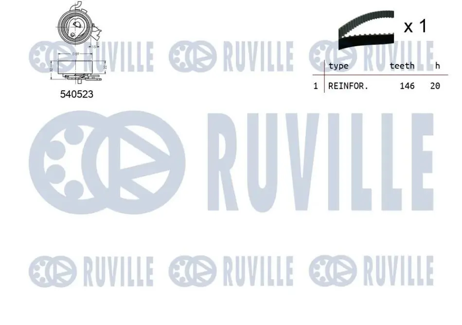 К-кт ГРМ Opel Vectra 2.0 93-, Omega 2.0 8V, 2.0 16 RUVILLE 550088