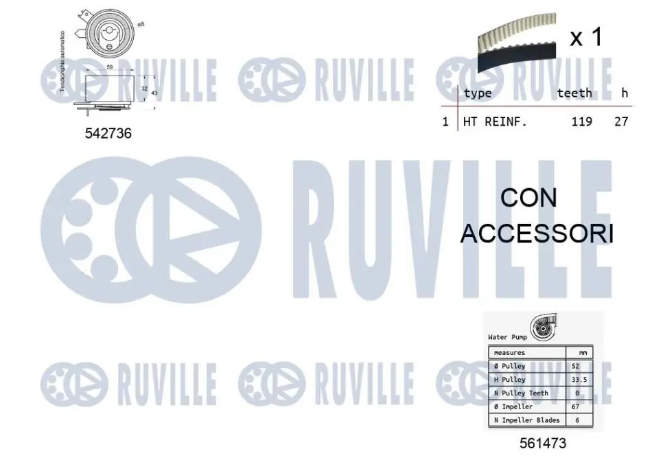 NISSAN К-кт. ГРМ (Ремень ГРМ+ролик+помпа воды) JUKE, NV200 / EVALIA 1.5dci RUVILLE 5503781
