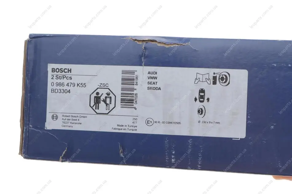 Диск гальмівний (задній) Skoda Fabia/Octavia/VW Golf IV 98- (230x9) (повний) BOSCH 0 986 479 K55