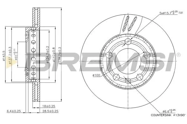 Тормозной диск перед. skoda fabia 99- (вент.) (239x18) Bremsi CD7164V