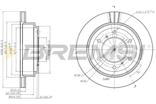 Товщина гальмівного диску (мм): 22