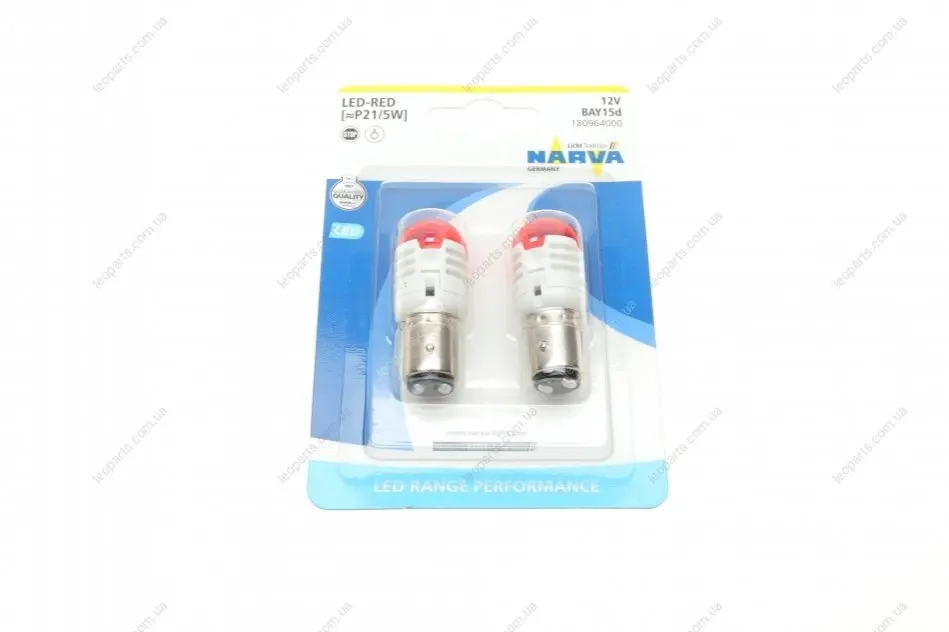 Автолампа P21/5W 12V 21/5W BAY15d (Led) (красная) (2 шт.) NARVA 180964000
